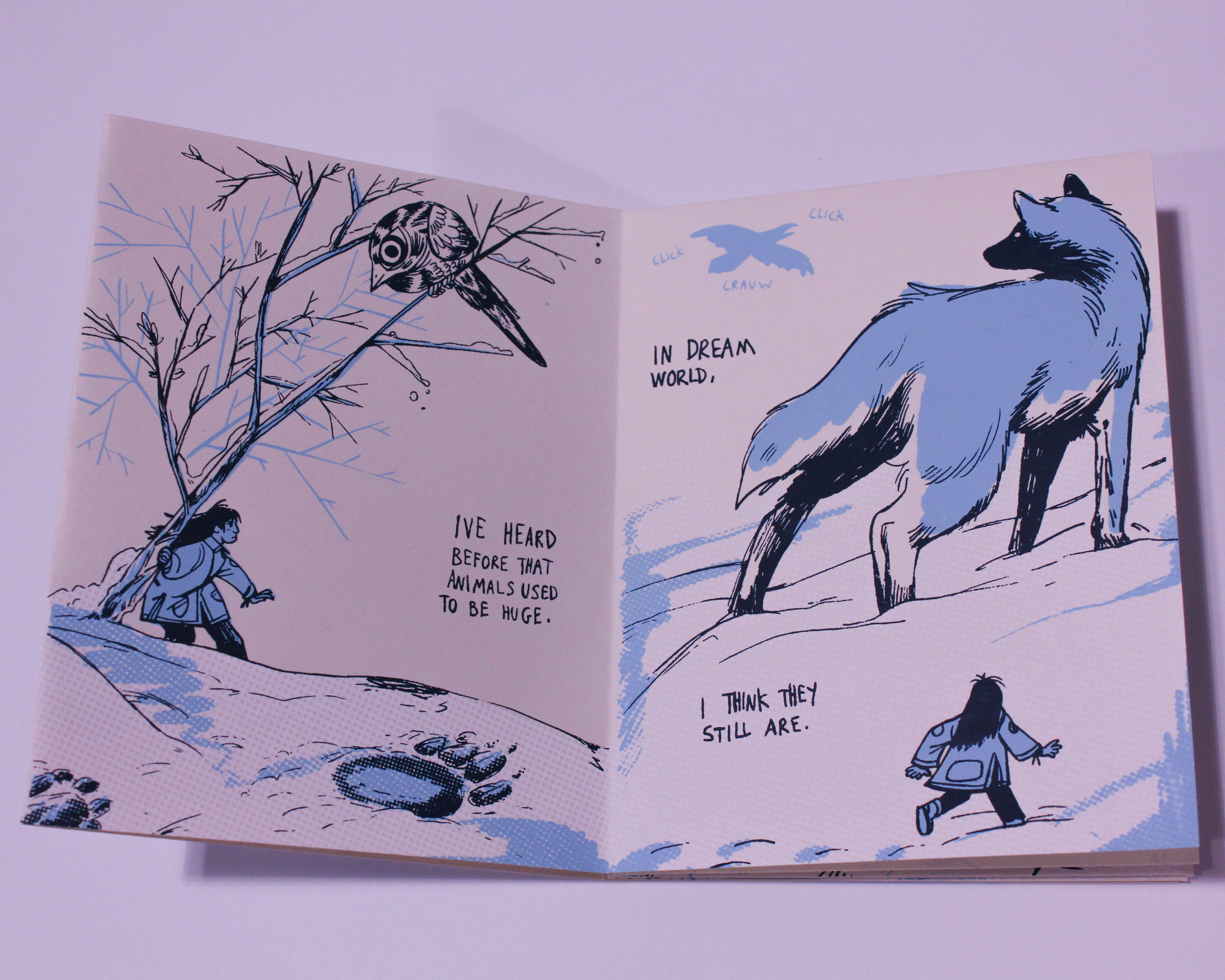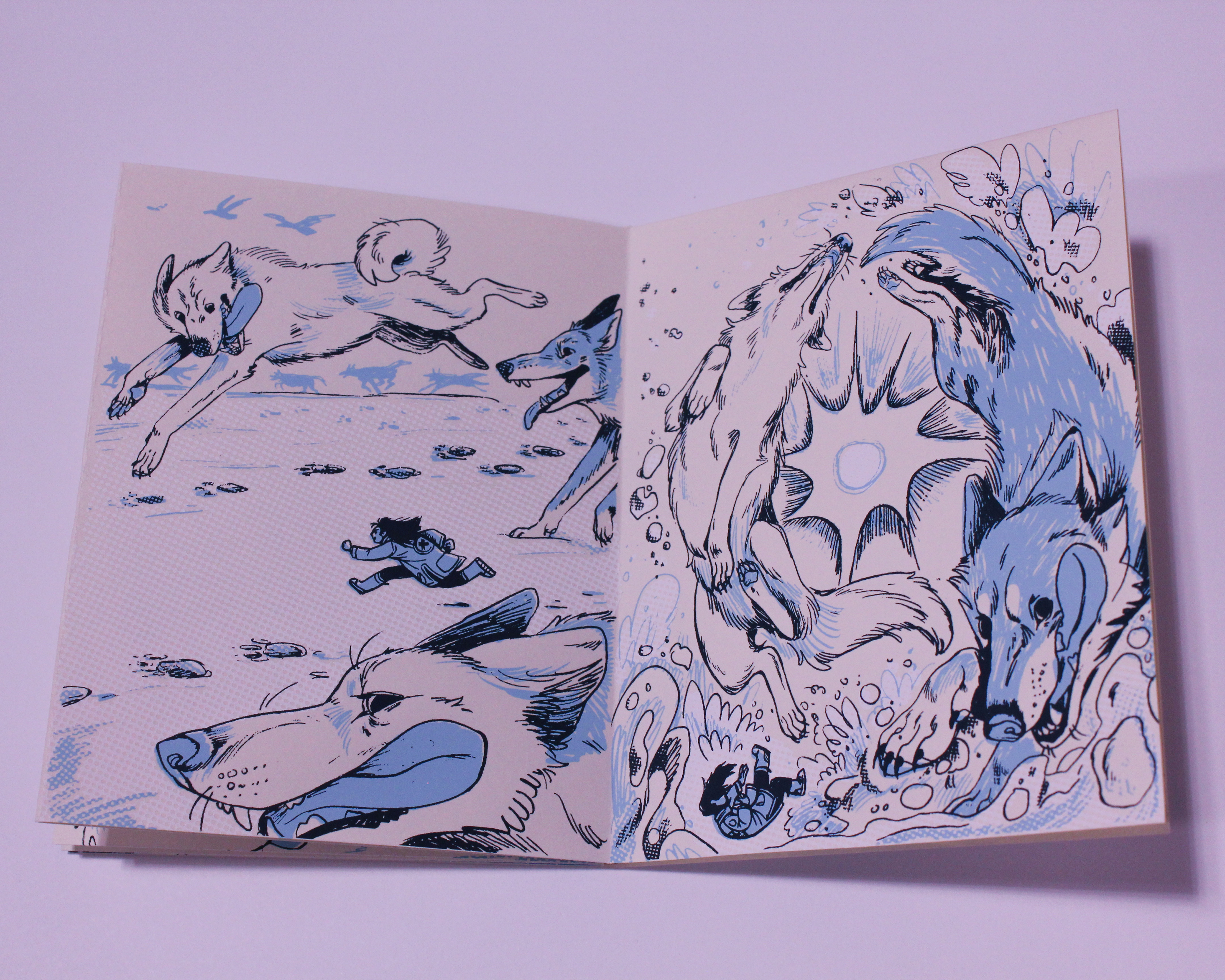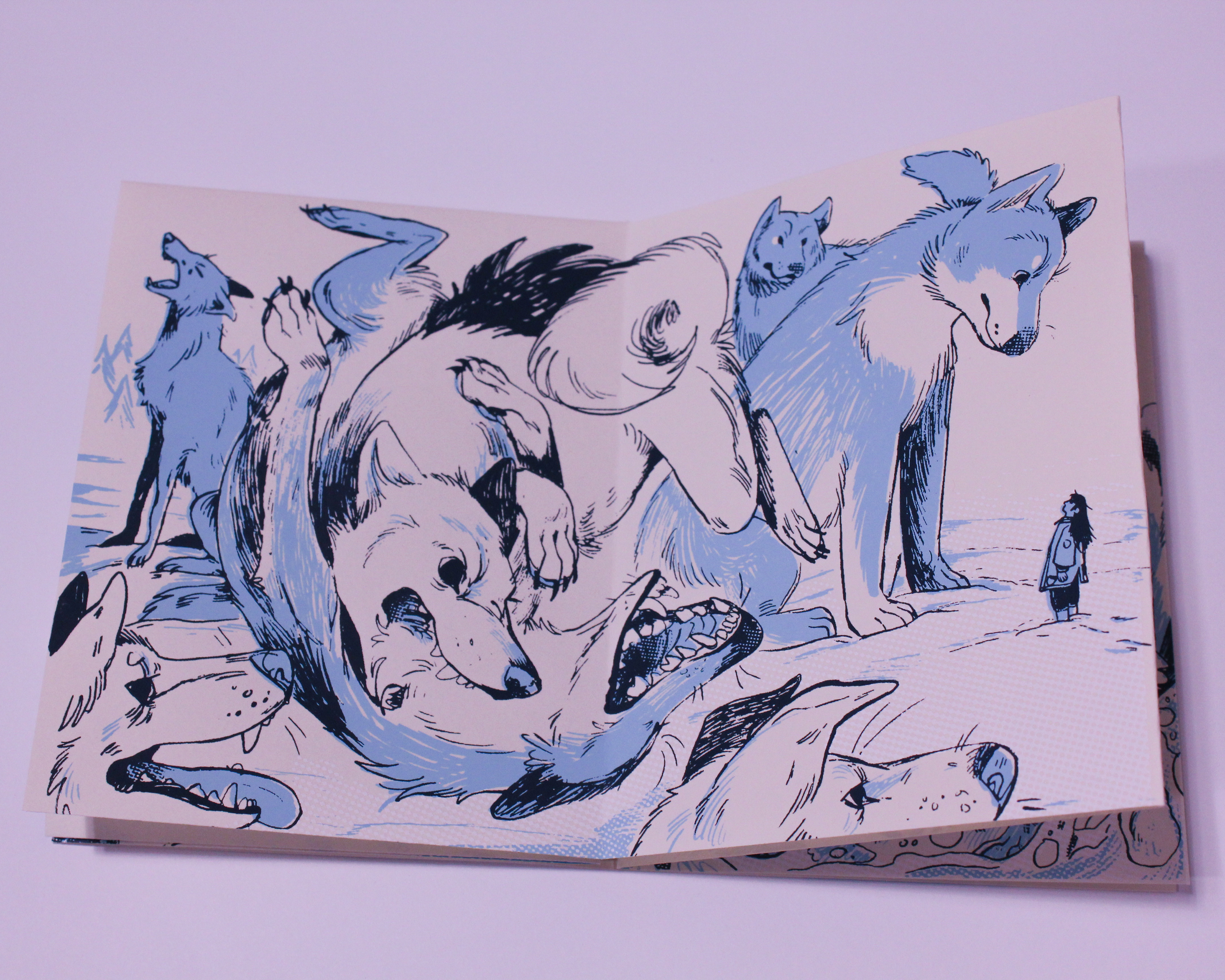 This little starfold zine is created by comics artist and illustrator Maya McKibbin, and printed by Go够Studio. The story is based on Maya's experience visiting and working with sled dogs, and their subsequent dreams about gigantic animals.